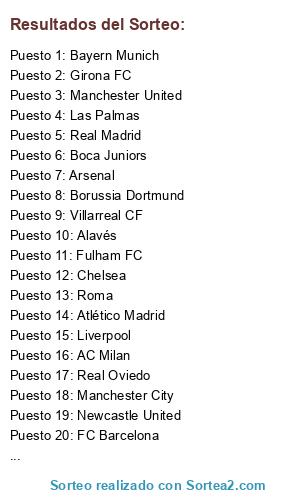Resultados del sorteo: