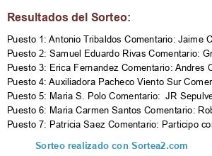 - Ganador 5: Maria S. Polo Comentario: JR Sepulveda Ramon Gonzalez
