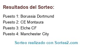 Lista de participantes: Elche CF, Borussia Dortmund, CE Montaura, Manchester City.