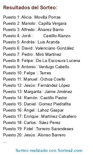 - Puesto 20: Jesús Alonso Barrero