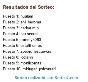 Lista de participantes: mirlugar_psiconutri, nualam, ani_beroma, carlaa.m.b, her.secret_, moniicomas, esteffhomes, rommy3093, iodiahn, zoeprunescuevas.