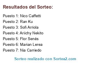Lista de participantes: Nico Caffetti(14 participaciones), Ariichy Nekito(25 participaciones), Nia Carriedo(5 participaciones), Ran Ku(25 participaciones), Marian Lerea(3 participaciones), Sofia Arriola(16 participaciones), Flor Senés(15 participaciones).