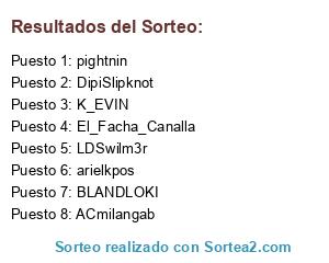 Lista de participantes: arielkpos, El_Facha_Canalla, pightnin, ACmilangab, BLANDLOKI, LDSwilm3r, K_EVIN, DipiSlipknot.