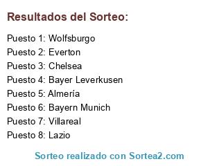 Lista de participantes: Villareal, Bayer Leverkusen, Lazio, Almería, Chelsea, Everton, Bayern Munich, Wolfsburgo.