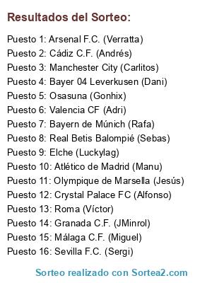Lista de participantes: Sevilla F.C. (Sergi), Bayer 04 Leverkusen (Dani), Real Betis Balompié (Sebas), Crystal Palace FC (Alfonso), Osasuna (Gonhix), Roma (Víctor), Atlético de Madrid (Manu), Arsenal F.C. (Verratta), Elche (Luckylag), Granada C.F. (JMinrol), Valencia CF (Adri), Manchester City (Carlitos), Bayern de Múnich (Rafa), Málaga C.F. (Miguel), Olympique de Marsella (Jesús), Cádiz C.F. (Andrés).