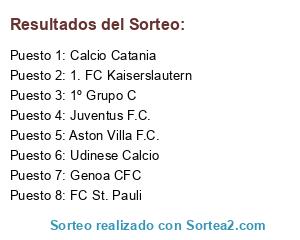 Lista de participantes: FC St. Pauli, Juventus F.C., 1º Grupo C, Udinese Calcio, Calcio Catania, 1. FC Kaiserslautern, Aston Villa F.C., Genoa CFC.