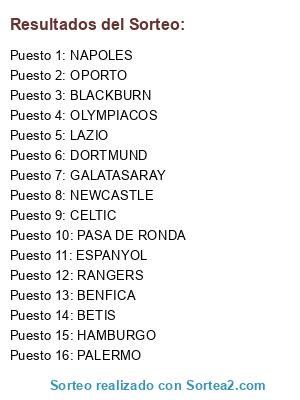 Resultados del sorteo: