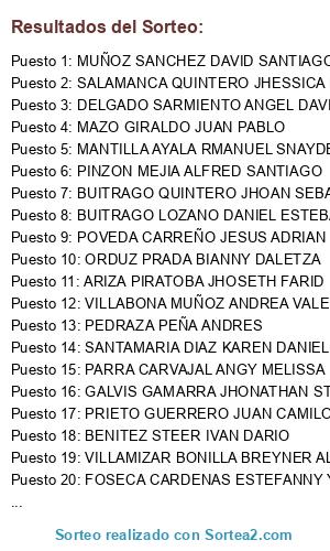 - Puesto 43: MONSALVE LIZCANO ANDRES SEBASTIAN