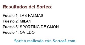 Lista de participantes: SPORTING DE GIJON, OVIEDO, MILAN, LAS PALMAS.
