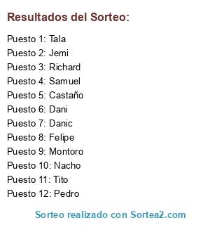 Resultados del sorteo: