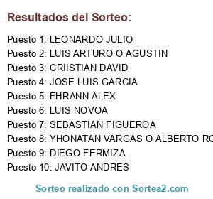 Lista de participantes: FHRANN ALEX, CRIISTIAN DAVID, DIEGO FERMIZA, SEBASTIAN FIGUEROA, LUIS NOVOA, JAVITO ANDRES, LEONARDO JULIO, JOSE LUIS GARCIA, LUIS ARTURO O AGUSTIN, YHONATAN VARGAS O ALBERTO RODRIGUEZ.