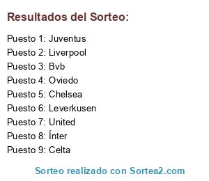 Lista de participantes: Leverkusen, Chelsea, Ínter, Liverpool, United, Oviedo, Juventus, Celta, Bvb.
