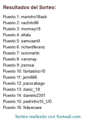 Resultados del sorteo: