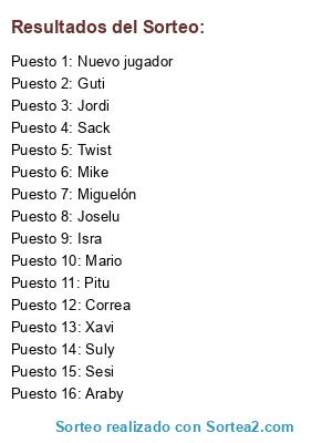 Resultados del sorteo: