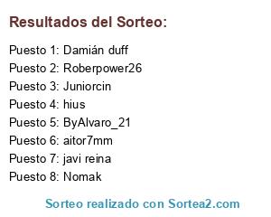 Lista de participantes: ByAlvaro_21, javi reina, hius, Juniorcin, aitor7mm, Damián duff, Roberpower26, Nomak.