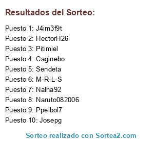Lista de participantes: J4im3f9t, HectorH26, Ppeibol7, Josepg, Pitimiel, Naruto082006, Sendeta, Nalha92, M-R-L-S, Caginebo.