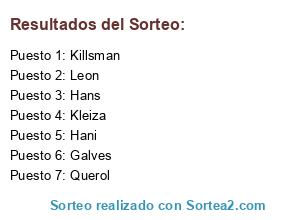 Lista de participantes: Hans, Hani, Killsman, Galves, Leon, Kleiza, Querol.
