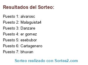 Lista de participantes: Cartagenero, er gomez, esebubor, bhuvan, Malaguista4, alvarosc, Danzare.