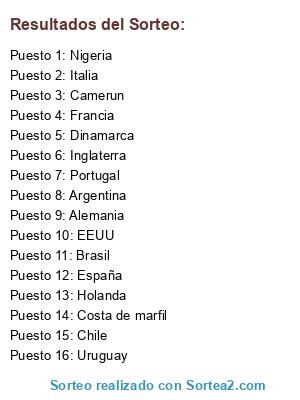 Lista de participantes: Alemania, Argentina, Brasil, España, Francia, Holanda, Inglaterra, Italia, Portugal, Camerun, Nigeria, Dinamarca, Costa de marfil, Chile, EEUU, Uruguay.