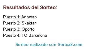 Lista de participantes: FC Barcelona, Oporto, Antwerp, Skaktar.