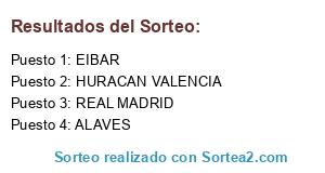 Lista de participantes: REAL MADRID, HURACAN VALENCIA, ALAVES, EIBAR.