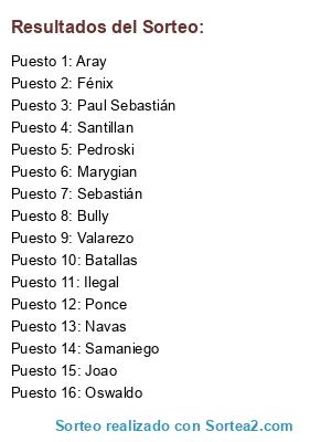 Resultados del sorteo: