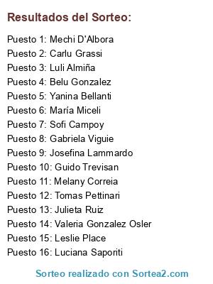 Resultados del sorteo: