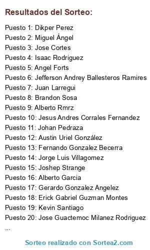 - Puesto 20: Jose Guactemoc Milanez Rodriguez