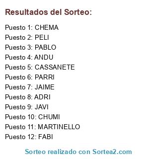 Resultados del sorteo: