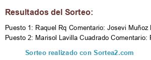 - Ganador: Raquel Rq Comentario: Josevi Muñoz Miriam Campo Monge