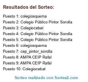 IES Las Lomas, AMPA Nuestra Sra. Del Rosario Torrevieja, Colegio Villa Fátina, Colegio Público Pintor Sorolla, CEIP DAme de Guardamar, Torre-pinos Torrent, CEIP Nuestra Señora de Monserrate-Molins, AMPA CEIP Rafal, Colegio Público Pintor Sorolla, Colegio La Purísima Alzira, AMPA CEIP Rafal, CEIP Dama de Guardamar, Colegio Público Pintor Sorolla, AMPA CEIP Rafal, Colegio Maristas Algemesí, CEIP Trullàs, AMPA CEIP Rafal, AMPA CEIP Rafal, Colegio Público Pintor Sorolla, CEIP Trullàs, AMPA CEIP Rafal, Colegio Público Pintor Sorolla, AMPA CEIP Rafal, Colegiocebat, Colegiocebat, Colegiocebat, Colegiocebat, Colegiocebat, Colegiocebat, Colegiocebat, cee_torrepinos, Joseandrescollado, Colegiolapurisimaalzira, Colegiosquema, Colegiosquema, Efsusanamestra, colegiosquema, colegiosquema, colegiosquema, Efsusanamestra, cep_pintor_sorolla, Colegiolapurisimaalzira, cep_pintor_sorolla, iesandreusempere, Cdfastamat, cep_pintor_sorolla, Maristasalgemesi, Cvillafatima, Colegiolapurisimaalzira, cep_pintor_sorolla, cep_pintor_sorolla, cep_pintor_sorolla, Joseandrescollado.