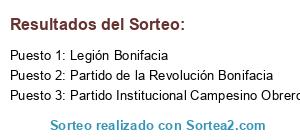 Lista de participantes: Legión Bonifacia , Partido Institucional Campesino Obrero , Partido de la Revolución Bonifacia.