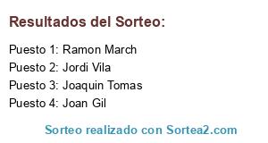 Lista de participantes: Joan Gil(2 participaciones), Ramon March, Jordi Vila, Joaquin Tomas.