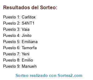Lista de participantes: Tamorfa, Emilio, Emiliana, Yeni, Vaia, Manueh, S4NT1, Carlitox, Jinito.