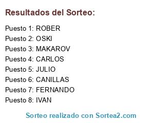 Lista de participantes: CANILLAS, CARLOS, FERNANDO, IVAN, JULIO, MAKAROV, OSKI, ROBER.