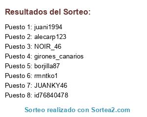 Lista de participantes: JUANKY46, nihat_8, jons_toon, polilocal, rafita011385, id76840478, Salva__Malaga, rmntko1, Cebo10, Fuuutre, label74, inkgamerusa, girones_canarios, borjilla87, CARLES_TIBURON, martulino, eym0905, CDX_Oo, tinorivera, Jouna20, joni10_27, alecarp123, saltamontes20, beckenwawa, TRX_HyPeRiOn, badenes, yusepee, juani1994, O_K-95, NOIR_46, XXXXXX.