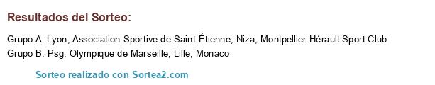 Lista de participantes: Lyon, Lille, Psg, Olympique de Marseille, Montpellier Hérault Sport Club, Niza, Monaco, Association Sportive de Saint-Étienne.