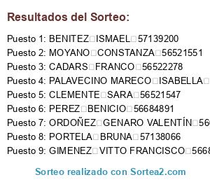 Resultados del sorteo:
