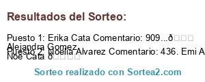 - Ganador 1: Erika Cata Comentario: 909...😁 Alejandra Gomez Noe Cata 🎂❤