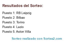 Lista de participantes: Torino, Bilbao, Lazio, RB Leipzig, Aston Villa.