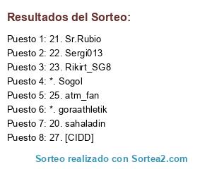 Lista de participantes: 20. sahaladin, 21. Sr.Rubio, 22. Sergi013, 23. Rikirt_SG8, 27. [CIDD], 25. atm_fan, *. Sogol, *. goraathletik.