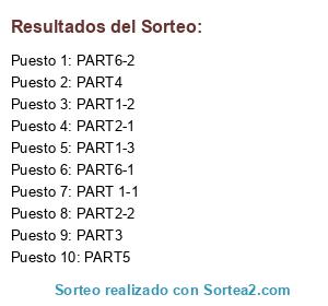 Lista de participantes: PART 1-1, PART1-2, PART1-3, PART2-1, PART2-2, PART3, PART4, PART5, PART6-1, PART6-2.