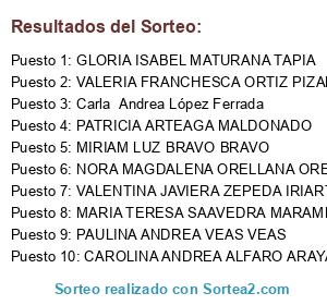Lista de participantes: GIARELLA CARMEN FERNANDEZ BASSI, PAMELA VERONICA URRUTIA SULANTAY, ELIZABETH ANGELICA ALVAREZ NARVAEZ, MARISEL XIMENA SALINAS ROJAS, PAULINA ANDREA VEAS VEAS, DANIELA MARCELA ALCAYAGA MERCURIO, ESTHER ALICIA AGUIRRE AGUIRRE, NICOLE ANDREA PINTO CAMPUSANO, NATASHA CATALINA ARAYA LEDEZMA, ANDREA MATILDE ESCALONA MORAGA, PATRICIA ARTEAGA MALDONADO, VANESSA ALEJANDRA CASTRO GAETE, PILAR FABIOLA PAEZ CASTRO, VALERIA FRANCHESCA ORTIZ PIZARRO, JASNA ELIZABETH MARIN GUZMAN, MARIA FERNANDA HERRERA GUZMAN, TAMARA ANDREA FARIAS SIERRA, MARIA TERESA SAAVEDRA MARAMBIO, NANCY ALEJANDRA JERALDO CORTES, NICOLE STEPHANIA ALEJANDRA GALLARDO GODOY, SHIRLEY YUDITH PAREDES GUERRERO, CAROLINA ANDREA ALFARO ARAYA, OLGA DE LAS MERCEDES IBACACHE OLIVARES, Carla Andrea López Ferrada, CATALINA DEL CARMEN ZAMORANO BECERRA, ROSSANA SOLEDAD GONZALEZ ZEPEDA, MARIA PATRICIA CERICHE RAMOS, María Pía Noemí Tapia Gómez, MARIA TERESA MENESES CARRIZO, PABLA DEL CARMEN RAMIREZ SEURA, VANESSA YOHANA BORJA SOTO, Tracy melanie maluenda gallardo, AYLEEN FRANCISCA VALENZUELA ARAYA, JUDDAKIA OSSENET GALLARDO GUZMAN, DIEGO ANDRES DELGADO ESPINOZA, ELSA MARÍA ÁLVAREZ ARAYA, GISELA MARCELA ALFARO LOPEZ, LORENA DEL CARMEN RODRIGUEZ BARRAZA, NORA MAGDALENA ORELLANA ORELLANA, INGRID SORAYA CALDERON HENRIQUEZ, CARMEN DEL ROSARIO GONZALEZ MOYA, PATRICIA DEL CARMEN FARIAS SILVA, DENISE CAROLINA FERNANDEZ IRIARTE, YORKA ANALENA MOYANO AVALOS, NATALIA ANDREA VEGA VEGA, VERONICA JACQUELINE MIRANDA BARRIA, MIRIAM DEL CARMEN CAMPILLAY CAMPILLAY, MARY CRISTI SEPULVEDA TELLEZ, VICTORIA ELENA DIAZ CORROTEA, CONNIE RAQUEL CECILIA ARAVENA AGUILAR, CARMEN MARITZA RIASCOS HINESTROZA, MALBINA DE LA SOLEDAD VALLADARES VALLEJO, VALENTINA JAVIERA ZEPEDA IRIARTE, JIMENA ISABEL ZAMORA NAVIA, GABRIELA BELEN CHINGA BORDONES, NILDA ANTONIETA PLAZA HERRERA, CAMILA LUCIA GALVEZ HIDALGO, CECILIA DEL CARMEN BORDONES RIVERA, CRIS CAMILA VEGA ZAMBRA, MARCIA ALEJANDRINA GODOY ZAMARCA, GLORIA ISABEL MATURANA TAPIA, NATALY ROSA CRESPO PATINO, JENNIFER ELIZABETH JAIME RAMIREZ, PILAR FABIOLA PAEZ CASTRO, SILVIA DEL CARMEN ROJAS PAREDES, PATRICIO IGNACIO MOLINA CORTES, MIRIAM LUZ BRAVO BRAVO, LILIANA ISABEL LOPEZ CORTES.