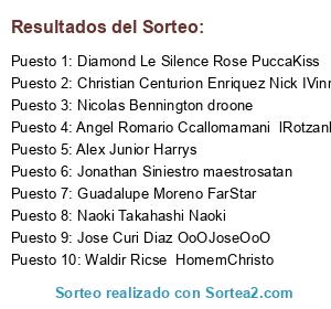 Lista de participantes: Fernando Tello xAtreyu, Laura Cifuentes MiJonatan, Jean Paul Rojas Sandoval SoraAoi, Jean Franco ReyHelado, Victor Daniel HJ XxDATRONExX, Cristian Steven IoryKusanagi, Daniel Glez iXehanort, Adrian Valverde Rengifo adrian10, Gabriel Mendoza llYangll, Milenka Janira lHikaril, Luz Maria Torres Huaripaucar Chukwai, Edgar Prado Vega Canyon Legacy, Bray An GC DarkPhanTom, Gino Paolo Navarro Huaman BlackStarKid, Franck Ventura nick:SwirlGore, Marko Chacaliaza iTzDarkfenix, GerZôn Edu Alata Flores ItouLawliet, Christian Centurion Enriquez Nick IVinny, Belen Havok xBel, Alex Junior Harrys, Sebastian Vargas Baztian, Lucas Nahuel Saint Luquitass, Rufus Wild xXKaZuKoXx, Axel Sebastian Ryhuto, Kleber Cordova Castillo YaphetS, Sergio T. Monsalve Tutiven IISaddlerII, Kämíïlö Kástíilló lGClKastillo, Dante Romero roklee, Franco Jiang iSuker, Luis Angel Arias Indama iRyuga, Guadalupe Moreno FarStar, Eberth Huamani H Yunne, Ronald Angel Pari Riuw, Vj Mendoza Xeno, Amy Bii Kunedo LionessNigg, Luis Eduardo Rueda Cano IAzazelI, Fran Neiff XxZancrowxX, Daniel Arango Ruiz ALmostII, Edwin Hdz Muñoz StazEx, Alexander Hel Qwaser Silencer777, Harold Balbin lLuharl, Alexis Lozano BebyCute, Bryan Eddy Blas zlEddyBetalz, Nuñez Joel elchino04, Edverth Lopez Delgado Edverth, Lightt L Cn lLight, Kifel Ramirez SrPocky, Edwar Totoro Kun Nick:ryunoyami, Angel Ricalde destrollermex, Gian Marco Perez MarcoGian1, Daniel San Xd Dickson Duelo, Renso Rensito Rensito, Ckryz Washumingosaurio Ckryz, Giampierre Moscoso Dávalos Ulquiorra, Tatiana Norambuena Tarifeño lGreed, Alexis Durand XxSasukexX, Lopez Ruben elkpo322, Gianmarco Jhonatan Gian102, Donovan Cuayla López lDonovanl, Erick Master Morales GodErick, José López HugoChavez, Josue Mendoza Retamozo JosDark, Jorge Luque Huamany RyuGam1n3, Mario Jose Brito xSakuraa, Javier Ruiz Gyakusatsu, Kirito Muñante Ramos takashi1997, Seijuro Kibagami lGrandarkl, Juantonio Cabeza Ramirez TinyTiger, Eduardo Guevara lUnDefin3edl, Claudio Castelli HaruNoah, Neko Heart Dark CorazonEmo, Jose Flores lNightwing, Diego Armando Figueroa 1Legend1, Luizz Gonzlz Hernandz luisggis, Charlotte Chan lYaya, Jesús Yagami AizenHeart, Lilybeth Guiot Lilim, Franco de Mi lMarioBrosl, Antonio Alvarez lShaoranl, Erick Nuñez Miranda albafiica, JhanPier Love JhanPier, Daniel Capote lSaitl, Jose Maria Levano Martinez lLuMinoxll, Miguel Fernandez iEros, Miguel Angel Lopez Perez UsuiZ, Yordan Cuti Conde Nick:xYOSHIROx, E̶d̶d̶y L̶ ̶S̶a̶e̶n̶z̶ ̶D̶i̶o̶n̶i̶c̶i̶o̶ lEddyl, Luis Miguel Pereyra [GM]00DarkSoul00, Glen Andrio Sanchez Espinoza 2SpySexCrazy, Sanji Axeso iSanji, Kim Sturabotti KimSt, Randy Equihua Armenta lNemesisl, Jonathan Siniestro maestrosatan, Jeanpol Ticona lDMlMynoz, Abraham Morrison AntiviruS, Andrea Sandobal Heriailin, Kmilo Spc SrTicTac, Stefano Aguero Lokokiraa, Emmanuel Marquez minos00, Ippo Jp Ippo, Macarena Michel Kaxy, Neuro Sasha RagnaWolf RagnaWolfs, Florencia Aparicio Shealin, Rafael Manjarrez MAD12, Aron T. Merma GhostVentus, Gonzalez Andres llShidoll, Miguel Barcelo alexpot, Martin Uchiha XxIbXx, Maximilian Boggiano Sosa Boggiano, Erik Grajales kirechaos, Katy Celosita Hakuu, Andres Leon Espinoza DarkGrim, BlackNaze Zeta lEkaterinal, Fernando Taica Silva luisxitho, Alioth's Claw Alioth, Trafalgar Law GoldenTouch, Prometheus GC ILikeTrains, ßoom Medina Carrion KamiEcchi , Matias Ardiles EnTao, Dave GC Wedy, Sebastian Cruz Kirixs, Alex Gonzales Roque lLatiosl, Jairo RN Pachu JairoRN, Brayan Jesus Gadereel, Jhon A'd lShanksl, Alexander Laura Apaza Callejer0, Raúl JeanPaul P. Gonzales olArielo, Clara Gress DarkOfSaturn, Victor Fuica Elkzat, Sin Sentimientos smashbross, Juan Nuñez Muñoz Darkyuki18, Victor de la Vega lNyuKunl, Olmedo Condori Akotsu, Brandonw Vilca Arthyst, ISkill Cat iSkill, Jhon Angeal Gonzalez Elygos, Leonel Flores Quispe RataDeCloaka, Jesse Alexander Lozano kiritohdl, Jose Rios N4G4T0, Juliio Vz LuckyBunny, G Arboleda Trillo sagebrush, Kaito Kuroba SnowPuddi, Ed Jansem lShiroYashal, Nahuel Arevalo RyuThos, Xiru Stk XiruSTK, Alan Farzo alanmonster, Jose Andrade deidarck, Jose David Molina ElJotito, Francisco Vaquero Delgado llYingll, Erwin Espinosa Fiiguito, Edhu Falcom Chars lHeracleSl, Alexander Laura Apaza Kurotatsu, Jefferson E. Salinas Levis, Xian Hikaryu Xian, J̶m̶ C̶o̶v̶a̶r̶r̶u̶b̶i̶a̶s̶ Slykamuz, Daniel Oyola Ramos TheDanieL, Esteban Cruz Juicio, Angela Sofia Ludenberg 3Ange, Hamilton Castellon blackhard, Russell Emmanuel Salazar tributo, Julio Carrillo Gonzalez OmegaDS, Alexander Peña TenshiDragon, Richard Fredy lReiji, Angel Romario Ccallomamani lRotzank, Enrique Carrera SonicBom, Alejandro F'q DevilRake, G Royer LB Sokaro, Nicolas Bennington droone, Tsk Gabriel Huamani ZoR3NtO, Igor Pino Contreras ClowZephyrDT, Ita Raiza Espinoza M IREM, Lautaro Martinez Hellfire, Michael Zephyrum Xenesis, Joczan Angon Estrada iVeron, Jaime Aldair LLerena Campos xStranger, Ivan Diaz IvanD, AnThony William Diaz HellsingxD, Nicolas Aravena Ambient, Jose Curi Diaz OoOJoseOoO, Anahi Kidana xYuax, Erika Nilsson Eriikaa, Bryan Caniullan xxXKaZuKoXxx, Cristian Tejada Huallpa tigerlance, Maxi Lope' wiman, Eduardo Matos edumt, Andrew Bejarano andrewdx, Joseph Blanco royfrit, Ruben Alfonso Beltran 3mor1v3r, Pablo López Chronos666, Yickson Ramirez Riena, Stephany Vera TroyBaby, Kâno Xiian Dêsk Yâmî Xiian, Jareck Salazar xJARECKx, Carlos Rodriguez CoralineLk, Fredy Grande Couoh pikafredy, Luis Ch Slender04, Joel Alonso Vera Hoeru, Wilson Alfredo Arroyo Tintaya LordDragun, Jun Solis IlHibarilI, Maximiliano Romero ShadowAngels, Aguustin Talleres Prex, Kèè Vììn fireblou, David Rivas darkwar, Max Anthony PrinceTony, Eduardo Acevedo Flores BreadWutWut, Diego R Sz zBitter, Bastian Otaku XD tsunazx, Shiki Nanaya 4Hunter, Serak Brazzers Mori ReysonOZ, Gustavo Arroyo Tintaya Aarios, Diêgô Sânchêz Alukard97, Leo Pereira Askad, Daniela Rivera Dejiko, Marcelo Sandoval darksiders12, Zeok Axeso Zeok, Thu Xikitho Biersack Bie