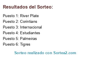 Lista de participantes: Tigres, Internacional, River Plate, Palmeiras, Estudiantes, Corintians.