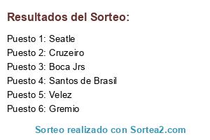Lista de participantes: Santos de Brasil, Seatle, Gremio, Velez, Boca Jrs, Cruzeiro.