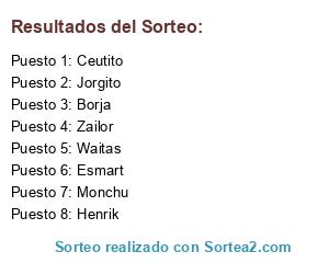 Lista de participantes: Borja, Henrik, Waitas, Ceutito, Jorgito, Monchu, Zailor, Esmart.