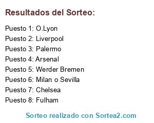 Lista de participantes: Chelsea, Liverpool, Fulham, O.Lyon, Werder Bremen, Palermo, Arsenal, Milan o Sevilla.