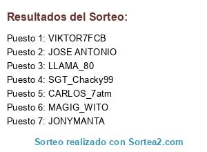 Lista de participantes: JONYMANTA, MAGIG_WITO, JOSE ANTONIO, CARLOS_7atm, VIKTOR7FCB, LLAMA_80, SGT_Chacky99.