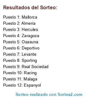 Lista de participantes: Hercules, Racing, Sporting, Zaragoza, Deportivo, Espanyol, Mallorca, Real Sociedad, Almeria, Levante, Osasuna, Malaga.